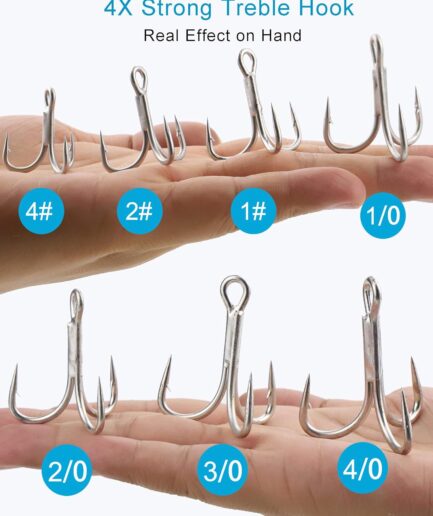 Saltwater Treble Hooks Large Size 4X Strong Triple Fishing Hooks for Big Game Trout Bluefish Salmon Kingfish