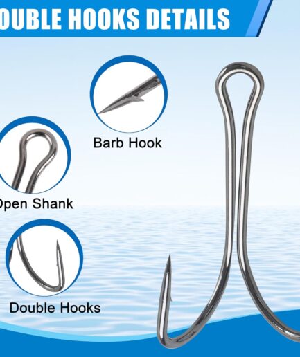 Classic Double Fishing Hooks,40/80pcs Open Shank Frog Hooks Barbed Small Fly Tying Fishing Hooks 3X Strong High Carbon Steel Fishhooks for Saltwater Freshwater
