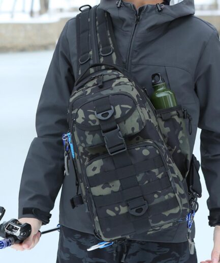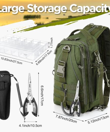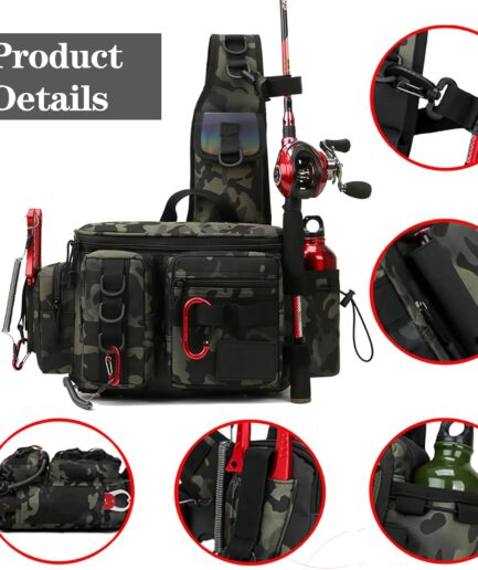Fishing Tackle Backpack Fishing Fanny Pack Crossbody Bag Fishing Tackle Box Organizer with Rod & Gear Holder, Ideal for Fishing, Camping, Hiking and More!-