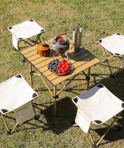 Camping Stool, 16″ Foldable Stool, Lightweight Aluminum Alloy Frame with Thicked Cushion- Integrated Storage Bag in Stool Top for Ultimate Convenience